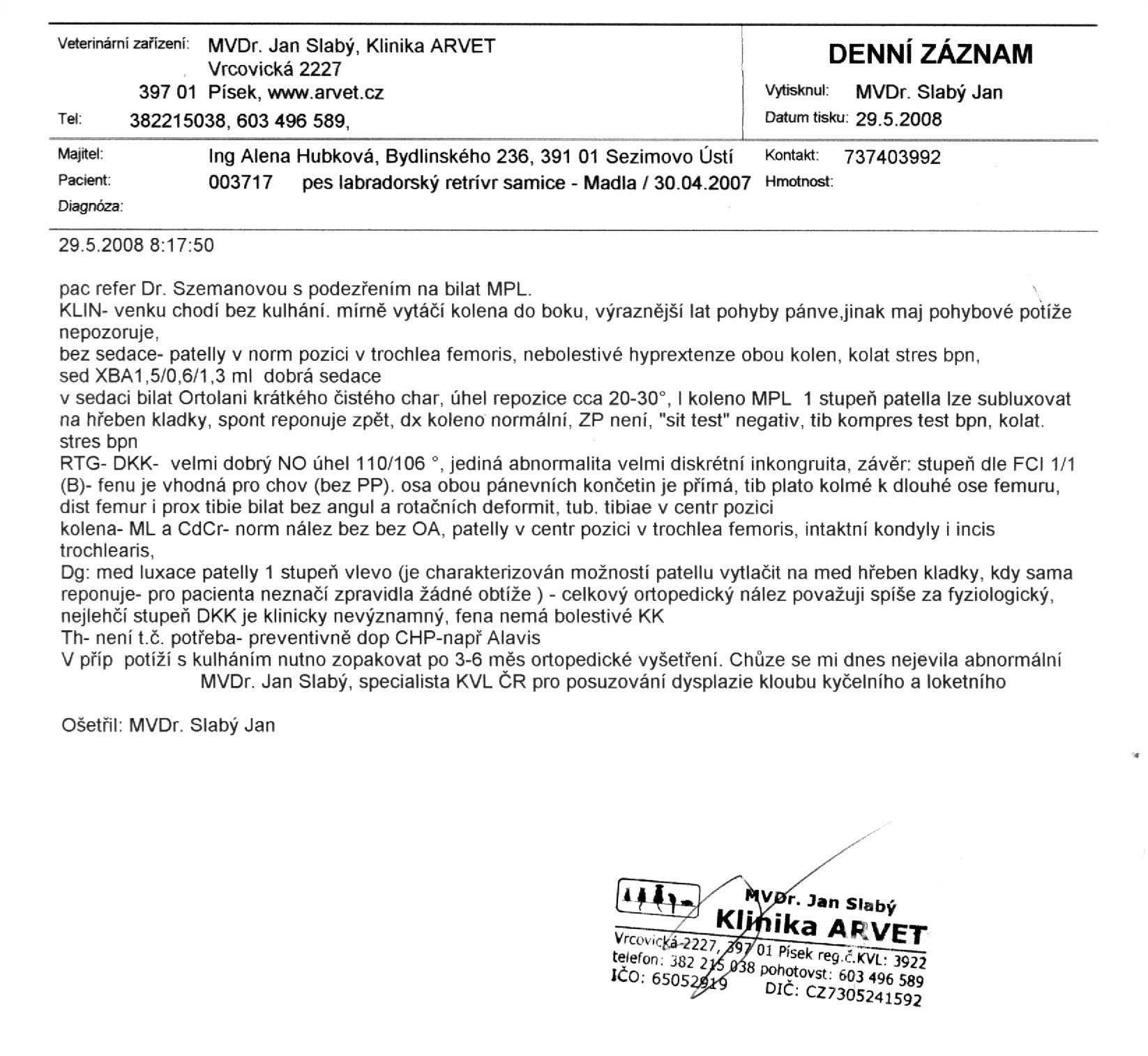 Ale celkově byl s výsledkem spokojený, prý to vypadá moc dobře. Nakonec jí ještě důkladně zretgenoval, jak kolínka, tak kyčle, a dokonce mi ty kyčle i vyhodnotil :-)